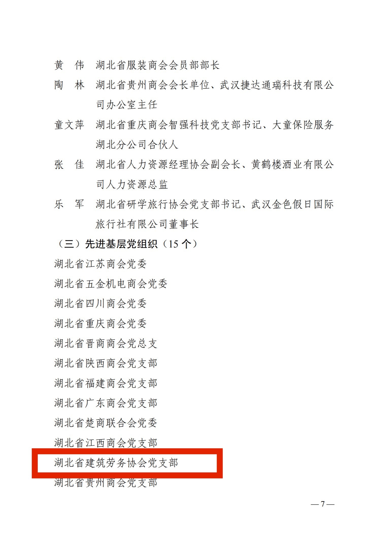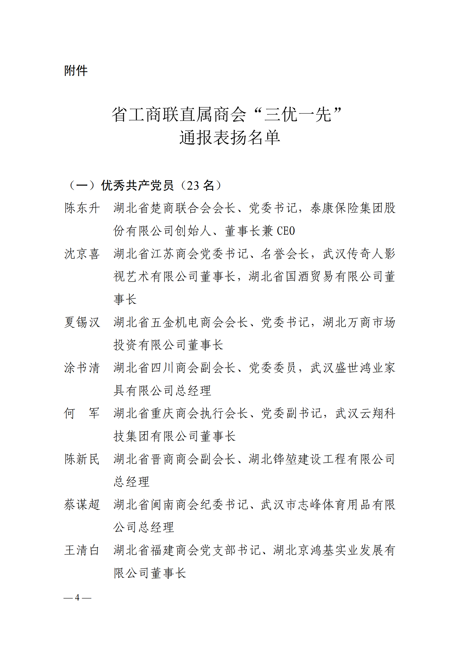 湖北省工商联直属商协会“三优一选”通报表扬名单