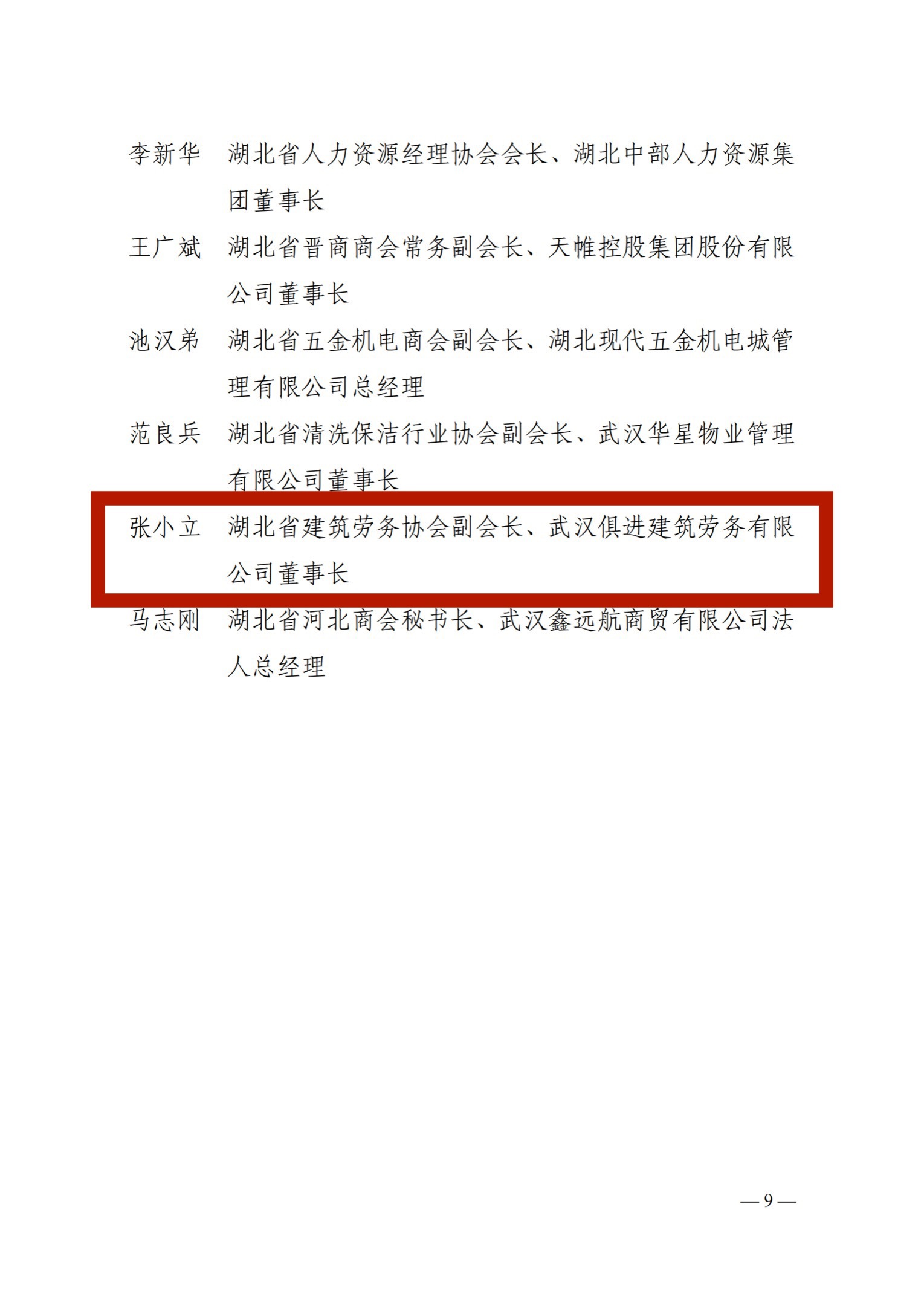 湖北省建筑劳务协会荣获“三优一选”的代表