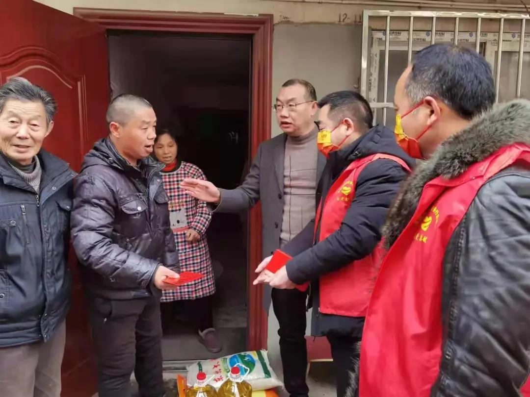 2022年1月15日早上,湖北省建筑协会孝感办事处、孝感市劳务服务行业协会理事会的志愿者们提前来到了协会办公驻地——孝南经济开发区周楼社区。上午10时左右,志愿者一行身穿红马夹,在社区书记周亚凡等社区干部的带领下,来到社区贫困户家中,送上了满怀爱心的春节慰问金和米油等生活物资。