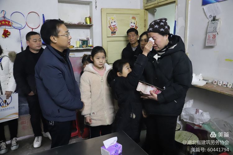 沉痛哀悼,慷慨相助。2022年1月16日下午,我会会员孙广涛(36岁)因心脏骤停突然去世。协会领导集体得知孙广涛近年因车祸腿部受伤,无法参与大的施工项目活动,加上行业大环境影响,收入捉襟见肘,家中有年迈的双亲及两个尚不足10岁的孩子待抚养,随即组织在会员群中发布捐款倡议书,不到三天的时间,有近两百会员纷纷解囊相助,捐款共计115500元。1月21日,协会会长赵书均、书记杨胜华一行代表会员将爱心捐款送至孙广涛家中,并进行了慰问。