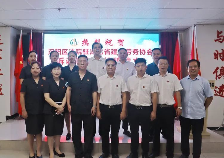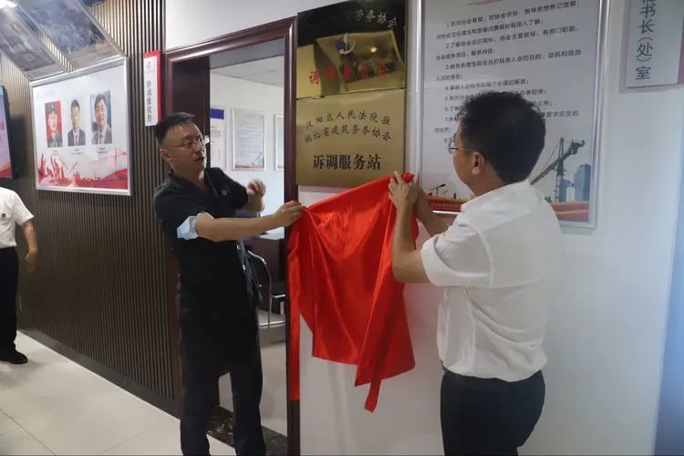 2022年8月19日,武汉市汉阳区法院驻湖北省建筑劳务协会的诉调服务站揭牌仪式隆重举行。汉阳区法院邹军副院长与我会赵书均会长共同揭牌。我会书记杨胜华,秘书长闫桂奇,常务副会长杨顺淞、盛德双,调解委主任周家宏、执行主任黄国跃,分会秘书长洪建生、刘红乾,汉阳区法院庭长熊敏、副庭长王海江及助理法官涂珍一行共同参加了揭牌仪式。