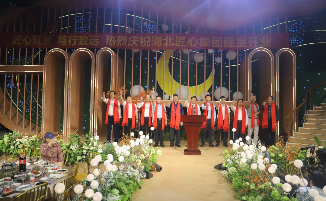 江苏中南建筑产业集团副总裁、海外公司总经理、国家重大专项博士毛洪涛,湖北汇通工贸集团有限公司董事长、武汉广水商会会长梅祖新分别致辞为匠心集团成立送上祝福。