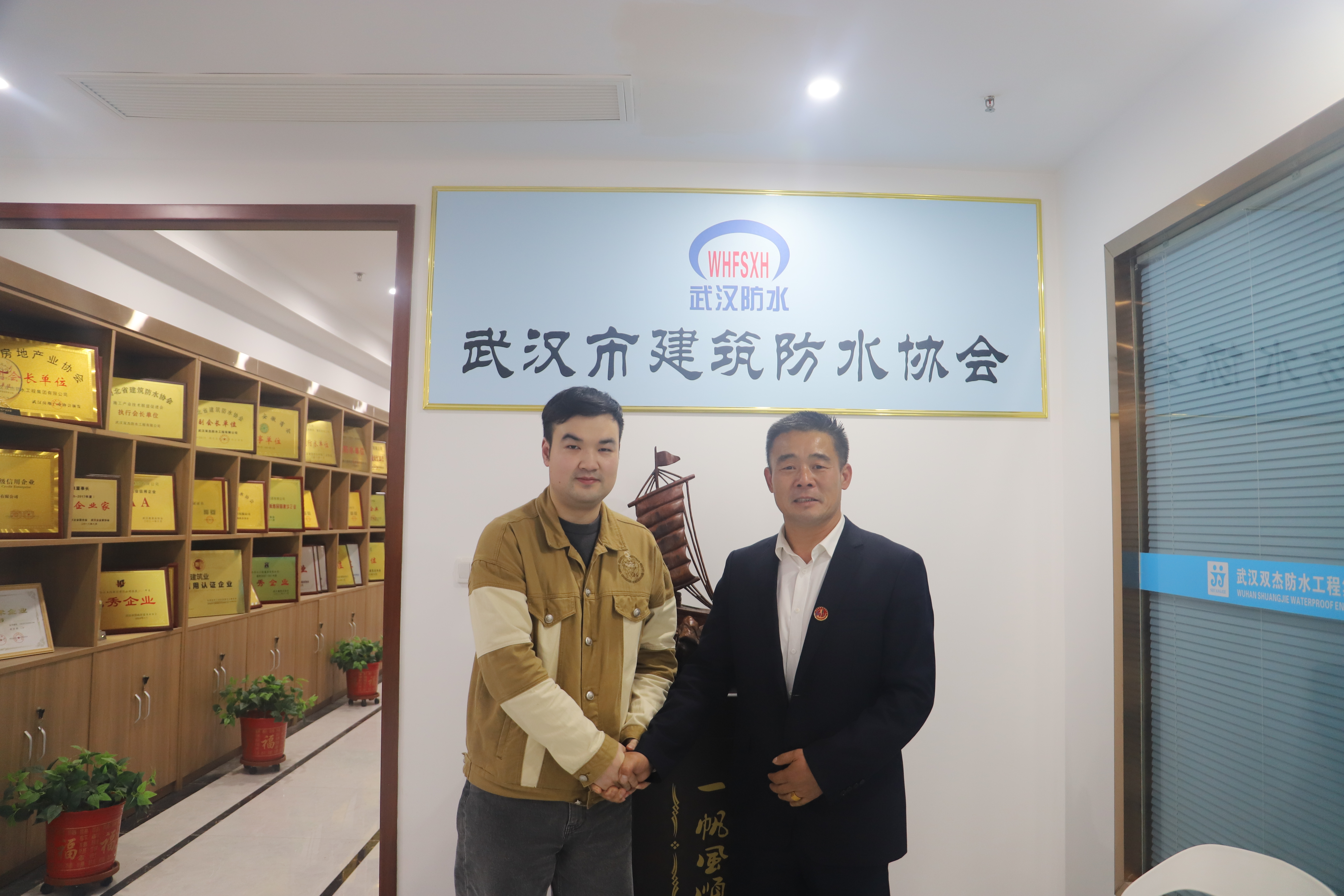 武汉市建筑防水协会会长范帅帅、老会长范学良、秘书长赵海滨、党支部书记孙东东对我会来访人员表示热烈欢迎。在会长范帅帅的带领下,一同参观了武汉市建筑防水协会文化建设及办公场所,深入了解了该会的办会理念及宗旨,随后,于会议室开展了座谈交流。