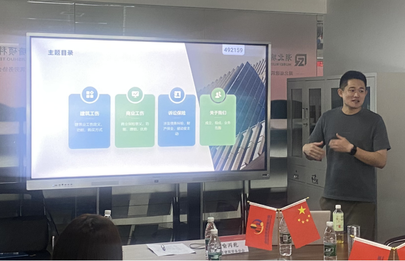 8月30日下午,湖北省建筑劳务协会第二届“大讲堂”第3期“建筑行业工伤风险管理应知应会”专题培训活动在1808协会党建会议室成功举办。协会主要领导、会员代表及工作人员近 20人参加了本次学习。本次活动由湖北省建筑劳务协会主办,湖北省建筑劳务协会综合分会协办,会员单位--湖北君上安保险代理有限公司活动支持。