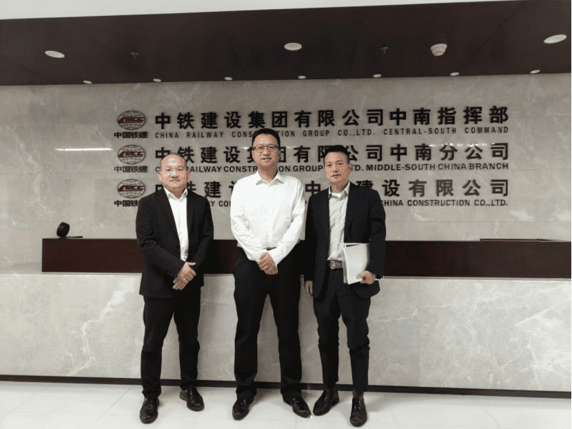 为加强我会与建筑总包企业的互动交流,学习央企优秀管理经验,2024年11月12日上午,我会秘书长闫桂奇、执行秘书长罗学进一行前往中铁建设集团中南建设有限公司(以下简称:“中铁建设集团中南公司”)交流学习,受到热情接待。在中铁建设集团中南公司党委委员、副总经理迟长哲、营销总监舒光雄的陪同下,大家一同参观了中铁建设集团中南公司企业展示宣传区,深入了解该企业业务概况及文化理念。