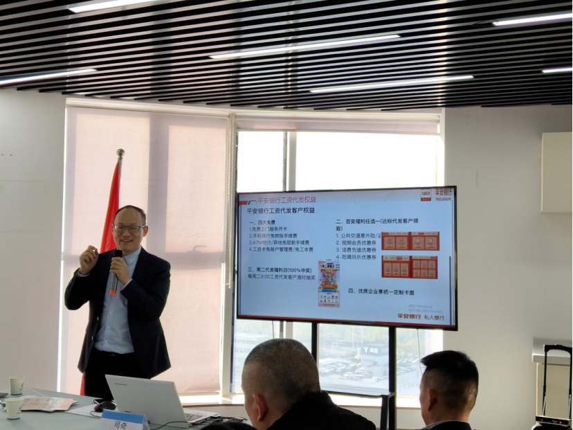 首先司奇老师对平安银行工资代发特色权益进行了详细解析,阐明了银行工资代发的业务优势,并介绍了如何有效降低企业经营风险、劳务工人税务、企业经营成本等方面问题。随后,同行培训老师向大家介绍了融资金融产品如何降低企业经营融资成本。