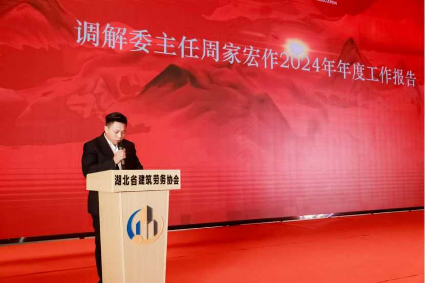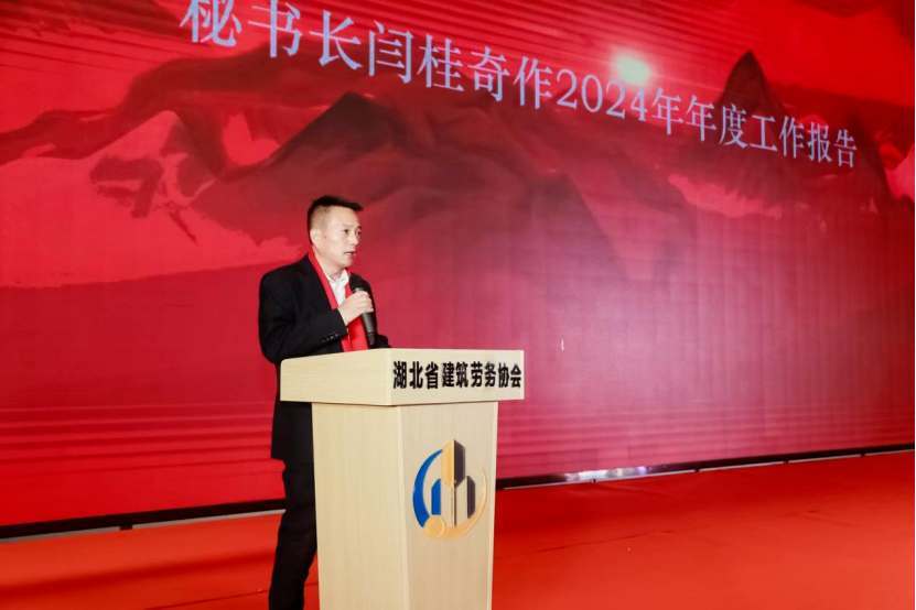 会议第二项,由秘书长闫桂奇进行年度秘书处工作报告,秘书长闫桂奇:2024年湖北省建筑劳务协会秘书处在全体会员的共同努力下,在第二届以王知兵会长、杨胜华书记为核心的领导班子团队支持下,秘书处围绕协会中心开展工作,积极履行职责,从协会组织建设、会议组织与宣传、会员服务体系建设、资源对接与整合、会员单位服务举措、行业协会相互交流、主管部门工作对接、行政管理等方面,各项工作井然有序地开展并取得了良好的成果。2025年,秘书处将继续坚持夯实根基、笃行致远,推动协会各项工作稳健发展。