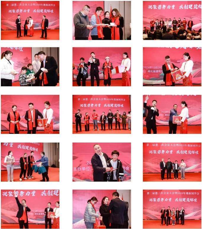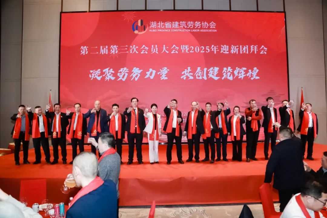 金蛇贺新春,凝心谱新篇,2024年12月28日下午,湖北省建筑劳务协会第二届第三次会员代表大会暨2025年迎新团拜会在武汉保和皇冠假日酒店隆重举行。会议邀请了相关部门领导、建筑总包公司、劳务总包公司、兄弟商协会代表及全体会员,共400多人共同见证了湖北省建筑劳务协会的发展与成就。此次盛会不仅是对过去一年辛勤耕耘的总结,更是对未来合作与发展的展望。