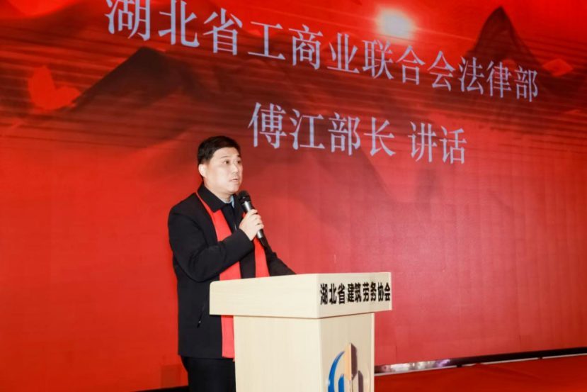会议第八项,由湖北省工商业联合会法律部部长傅江讲话,傅江部长对湖北省建筑劳务协会2024年的工作成果给予了充分肯定和高度评价,并对协会今后的工作和未来发展寄予了殷切希望。傅江部长指出,在当前复杂多变的市场环境中,会员企业在经营过程中难免会遇到各种法律问题和纠纷。他强调,协会要充分发挥人民调解委员会的作用,及时为会员企业提供专业的法律咨询和援助,帮助他们合规合法经营,有效防范和化解法律风险。同时要继续坚持“四好”商会建设标准,加强内部建设,提升工作水平,提高会员服务质量,为地方经济社会发展贡献力量。