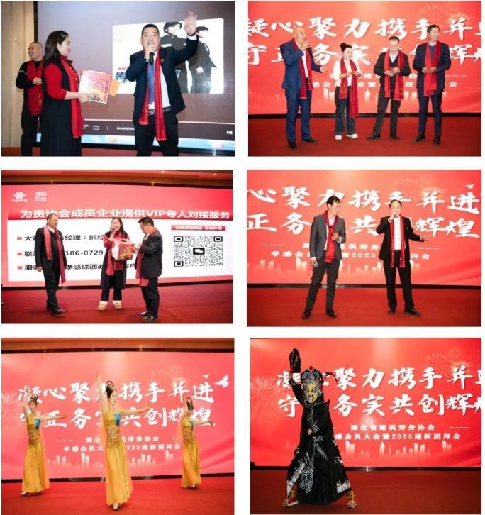 祥龙贺瑞辞旧岁,瑞蛇盈门启新程。2025年1月12日下午,湖北省建筑劳务协会孝感办事处2025年迎新团拜会在孝感市宇济大酒店隆重举行。活动邀请了协会领导、劳务总包单位、兄弟商协会代表及全体孝感办事处会员,共200多人共同见证了孝感办事处的成长与发展。