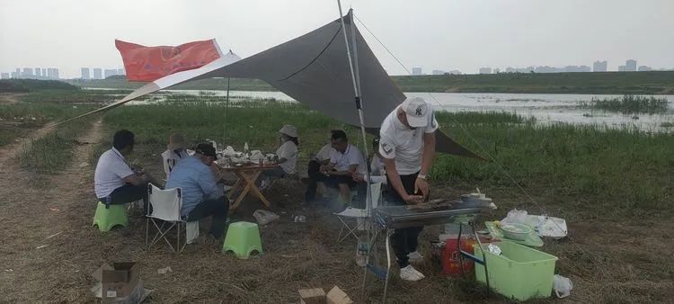 虽然是趣味赛,大家秉承友谊第一、比赛第二的原则,偶有大鱼咬钩,大家齐心协力将鱼入网。午饭时间,有人搭建帐篷,有人支烤架,有人制作烧烤,切磋技艺,畅聊人生,趣味无穷。