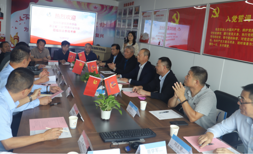 为实现各地区建筑劳务行业资源共享,打破地域限制,实现优势及资源互补,10月14日下午,苏州市建筑劳务协会会长张文革、党支部书记王凯旋、秘书长马升平、瓦工分会会长张义来、办公室主任程云,浙江省“三会”劳务行业分会常务副会长刘志坚、常务副会长苗学军、副会长朱建洋莅临我会参观交流。
